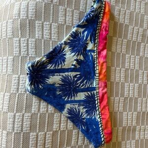 Vibrant bikini bottom with floral and lace design. Features a mix of colors for a bold look.