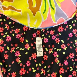 Maaji NWT One piece Swimsuit Medium Reversible Yellow Tropical Black Floral