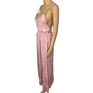 Maaji 'Nicole Palm Foilage' Lace-Up Maxi Dress, Pink, Size S.