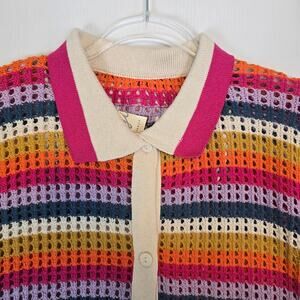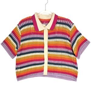 Maaji Paradiso Knit Crochet Button Shirt Collared Multi Color Stripe M NEW