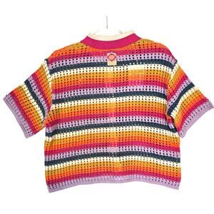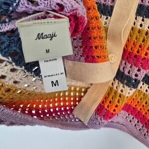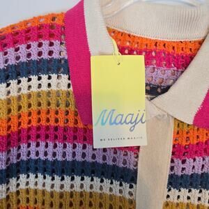 Maaji Pink Prism Lyne Shirt Knit Crochet Button Multi Color Stripe M NEW