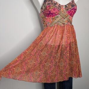 Maaji Pink Orange Sheer Swim Cover Dress XS/S