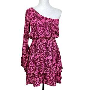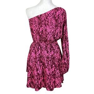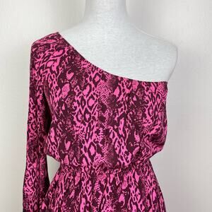 Maaji | Pink Quartz Lovliness One Shoulder Snake Print Cocktail Mini Party Dress