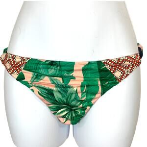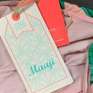 Maaji Pink Tropical Bikini Bottoms SMALL Reversible Solid Floral Cheeky $65 NEW