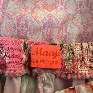 Vibrant dress with pink and orange patterns. Features intricate designs. Ideal for casual wear.