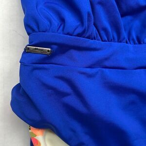 Blue Solid to floral print. Floral side is cream with orange, pink and blue floral