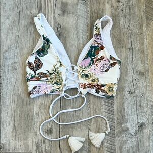Beautiful floral design. Textured bright white. Tassel details. Removable cup padding. Original tags removed.