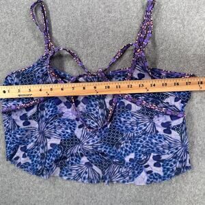 Maaji Sheer Cami Swim Top Women's Large Purple Floral Strappy Crossover