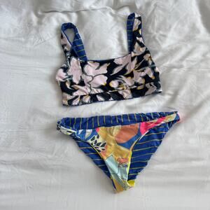 Maaji Sporty Reversible Bikini Set Blue Stripe Floral Women’s Size S