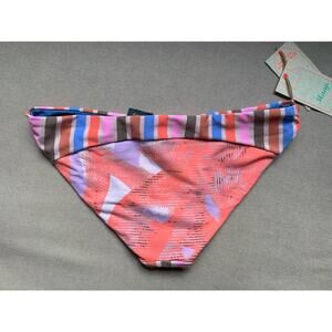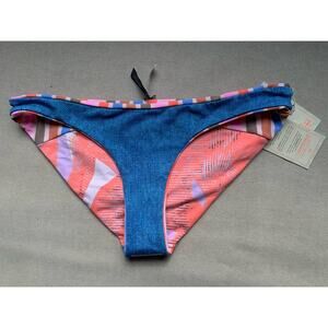 Maaji Swim Bikini Bottom Size MED Striped Blue Pink Brown Red Summer Reversible