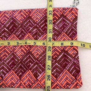 Maki bikini wet bag. This bag is made with waterproof lined plastic. There is a zipper enclosure The wet bag is perfect for putting your wet swimwear into as well as other beach items. This bag will also fit phones and some tablets. The wet bag measures approximately 9.5" wide and 8.5" tall. Great make up bag, tote bag, gift for her, gift for women, gift for mom. Pet free smoke free home EUC