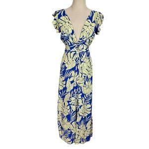 Maaji Wildest Dreams Tropical Plunge Open Back Button Front Maxi Dress Cover Up