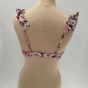 Maaji Womens Floral Print Ruffle Trim V-Neck Bathing Suit Top Purple Size L