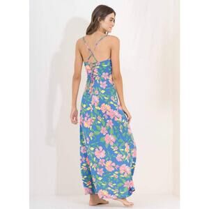 Maaji Zandra Star Flower Sleeveless Lace Back Maxi Dress Blue L