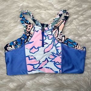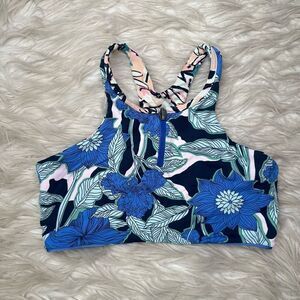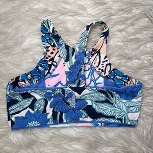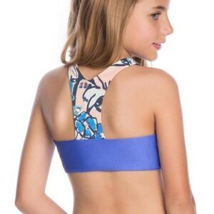 Maaji Reversible Racerback Bikini in blue and pink floral pattern