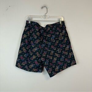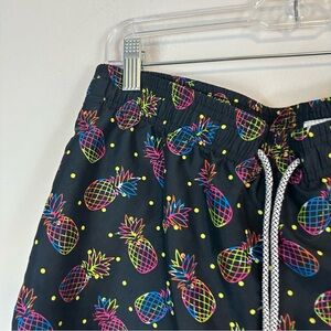 Excellent used condition men's swim trunks. Cool rainbow/ disco pineapple print.