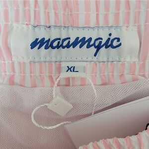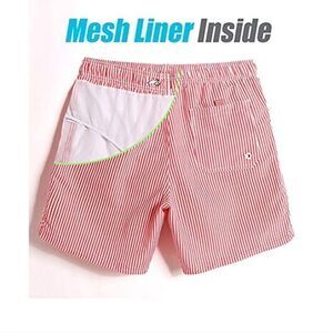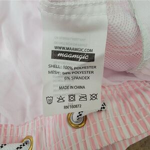 NWT Maamgic Mens Stripe Swim Trunks Slim Fit Swimming Shorts Quick Dry Mid Length Mesh Lining Pink Size XL