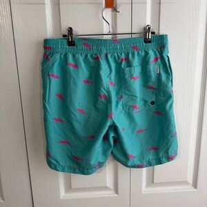 Excellent condition, shark themed lined swim trunks with pockets