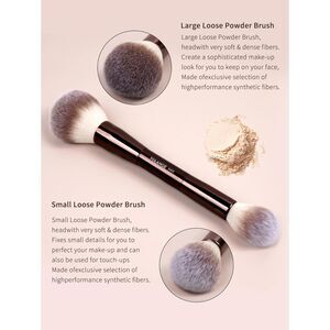 Dual-head design: multifunctional double ended makeup brushes for dry foundation, powder, and concealer. The larger brush head can modify your facial contour and neck. The small brush head is suitable for modifying the shape of eyes, nose bridge, and lips