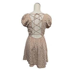 Mabel Brown Plaid Cottage Core Dress Size Medium Puff Sleeve Lace Up Back