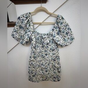 This casual sundress from REVOLVE features a classic blue and white floral print, perfect for a day out. The dress boasts a square neckline and charming puff sleeves, adding a touch of elegance to its casual style. Its lightweight fabric ensures comfort, making it an ideal choice for warm weather.