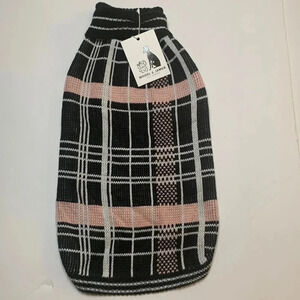 Mabel & James Plaid Dog Sweater Pink, Black Size Large