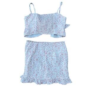 Mable Anthropologie Floral Ruffle Tie Front Crop Top Mini Skirt Set – Medium