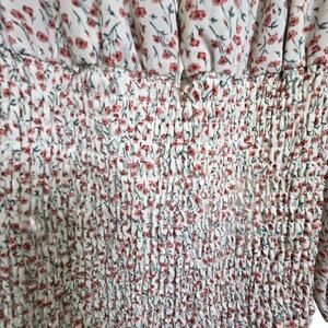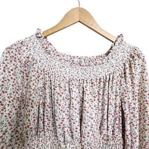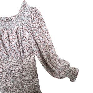 The Mable Babydoll Mini Dress is a stylish and feminine piece perfect for casual occasions. This floral dress in white and pink features long puff sleeves and a pullover closure for easy wear. Made of polyester, the dress has a bohemian and cottagecore vibe with pleated accents and a lined interior for comfort. Ideal for summer, fall, and spring, this dress is a must-have for any pretty and romantic wardrobe. New with tags.