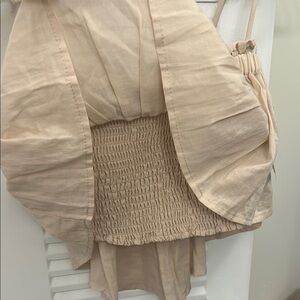 Chic beige sleeveless top with ruffled straps. Perfect for casual outings.