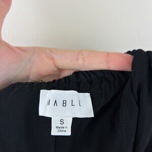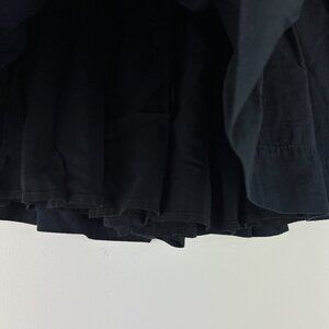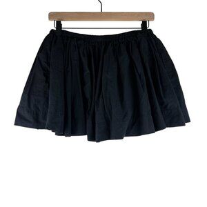 Mable Black Elastic Waist Cotton Poplin A-Line Mini Skirt. Skort. Skirt with shorts under. Pleated. Pull on. Pockets. Minimalist, neutral, classic. Self 100% cotton. Lining 100% rayon. Size Small. Waist: 12.5" across. Length: 13.5". (556)