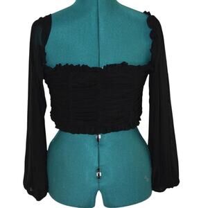 Mable Black Ruched Ruffle Sheer Long Sleeve Crop Top Size M