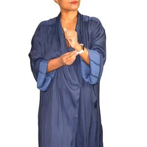 Mable Blazer Dress Blue Navy Satin Silky Oversized Side Slits Baggy Size Medium