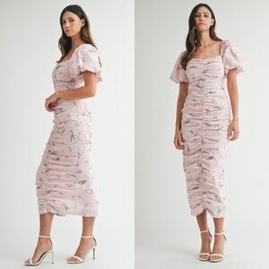 Mable Blush Pink flirty feminine floral rusched dress size Large L new