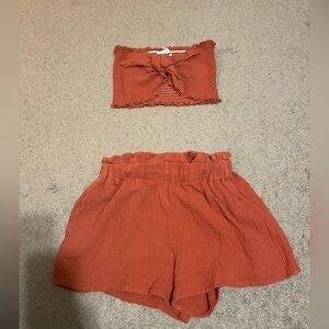 Mable Burnt Orange crop top and shorts set size medium