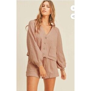 Mable Cardigan Set Haley Crop Womens Large Rose Shorts Pockets Lounge Casual