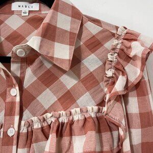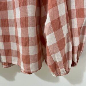 Mable Clothings Jia Ruffle Shoulder Peach Gingham Button Up [size L]