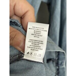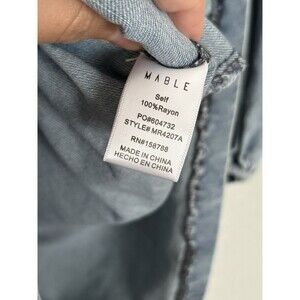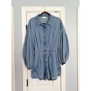 Mable Denim Romper Womens Small Collared Button Up Lantern Sleeve Blue Shorts