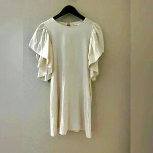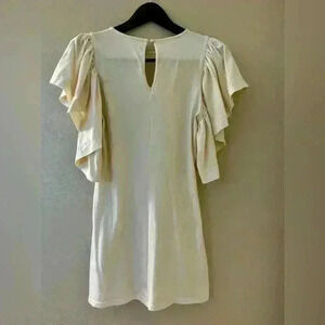 Size small. 100% Cotton. Ruffle cap sleeve mini dress. Side pockets. 026