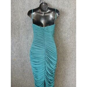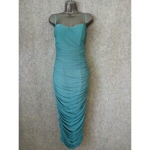 Mable Dress Mesh Ruched Tube Midi Green Women's Size M Sleeveless Fitted Stretch