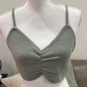 Discover the elegance of this sage olive green crop top, perfect for adding a touch of sophistication to your casual look. Size M/L in GUC **tiny sang as seen in last pic**