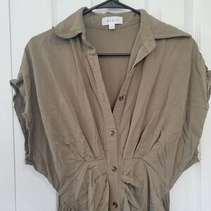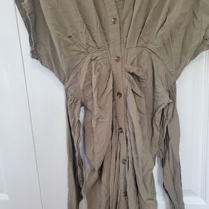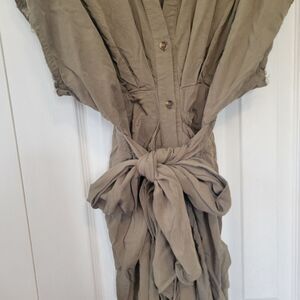 Mable Olive Green Button Up Midi Dress Size Small Tie Front