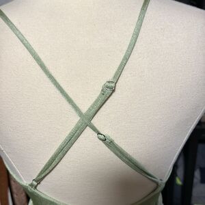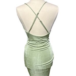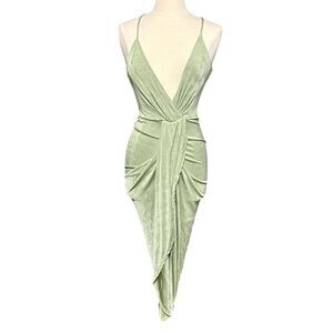 Mable Sage Green Strappy Ruched Midi Dress Small Crisscross Draped Front