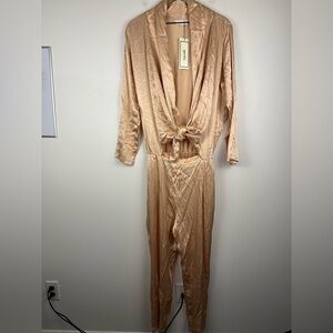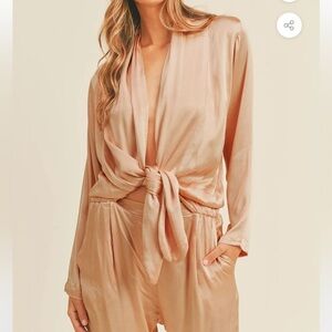 Mable Satin Alinia Front Tied Long Sleeves Blush Pink Jumpsuit Women’s Sz S