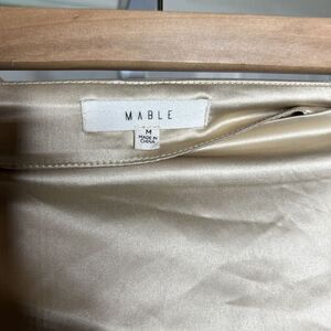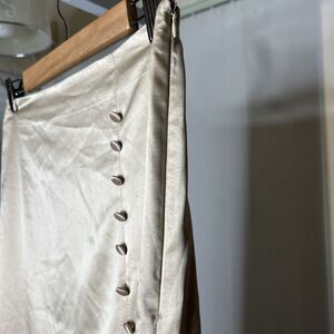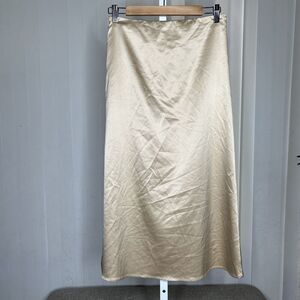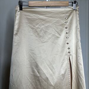 Mable Satin Midi Skirt Nude Beige Color Deep Slit Buttons Zip Closure Size M