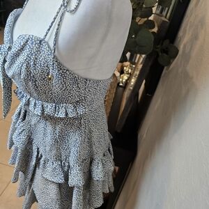 Mable Spaghetti Strap Polka Dot Mini Dress Open Front Size S