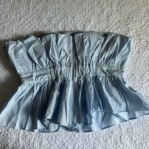 Light Blue Strapless Ruffle Top Size Large Tags Still On Never Been Worn