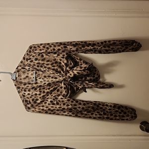 Long Sleeve Sheer Cheetah Print Hint of gold stripes