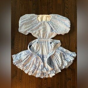 Mable Women’s M Blue/White Gingham Lolita Puffed Sleeve Cut-Out A-Line Dress EUC