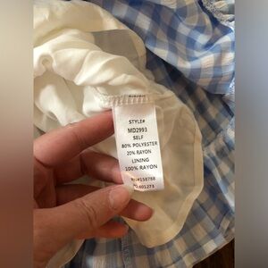 Color: Blue/White gingham. **Note that the stock photo does show a brown/white gingham color; however, this dress is blue/white gingham. Stock photo shown to illustrate fit and design.**