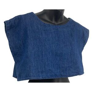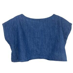 Mable Womens Size Large L Denim Crop Top Blouse Cap Sleeve Round Neck New